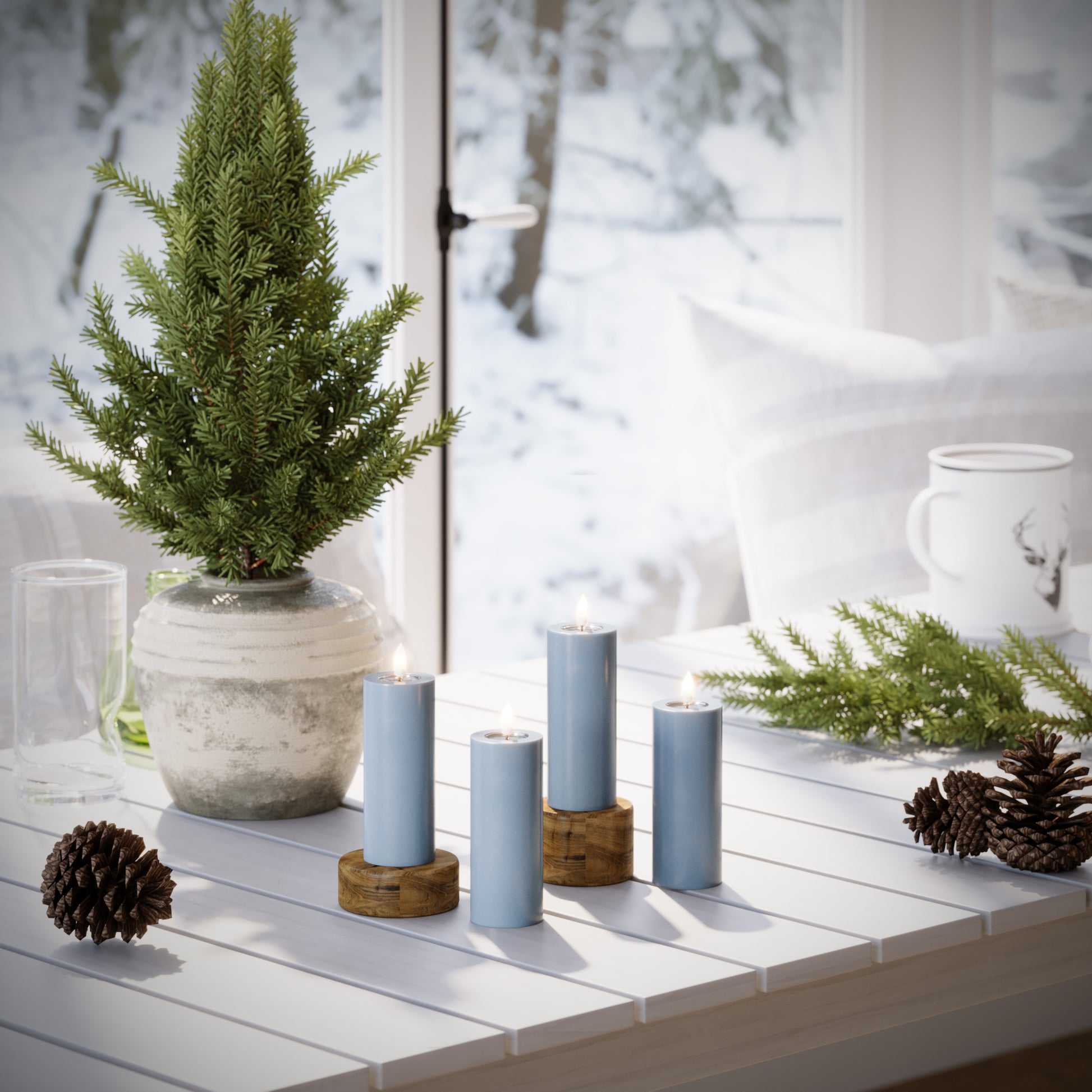 Et bloklys er en enkel måde at skabe hygge på – særligt flot, når flere lys samles.