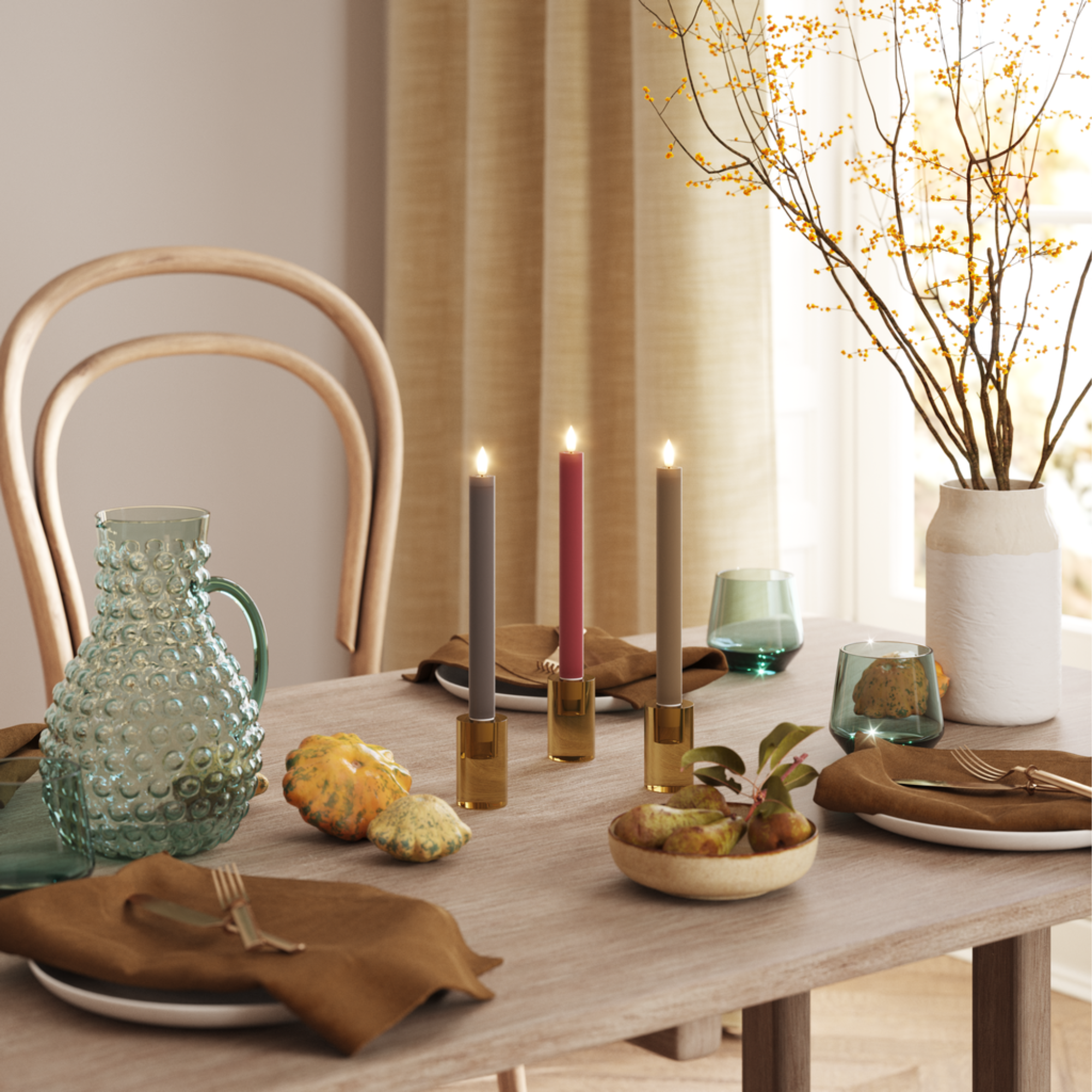 Dæmpede nuancer, varme toner og naturligt lys. Skab en rolig og elegant jul med sæsonens farver fra Deluxe Homeart.