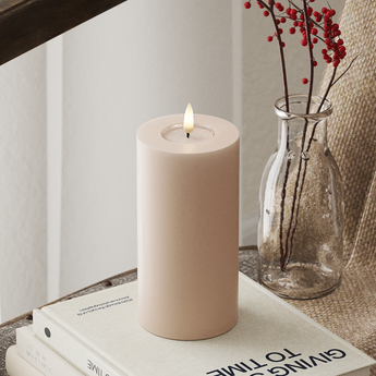 Produktet kan findes i: All, Clerk API, LED Indoor light, LED Pillar candle, LED Pillar candle Ø 7.5 x 15 cm, Pillar candle - All, Pink, Seasons