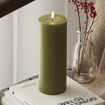 Produktet kan findes i: All, Autumn, Clerk API, LED Indoor light, LED Pillar candle, LED Pillar candle Ø 7.5 x 20 cm, Olive Green, Pillar candle - All, Seasons