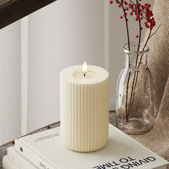 Produktet kan findes i: API dell'impiegato, Candela a pilastro - Tutto, Crema, Deco Style, Estate, Luce indoor a LED, Solid Stripe, Solid Stripe GUIDATO Candela a pilastro Ø 8 x 12,5 cm, Stagioni, Tutto