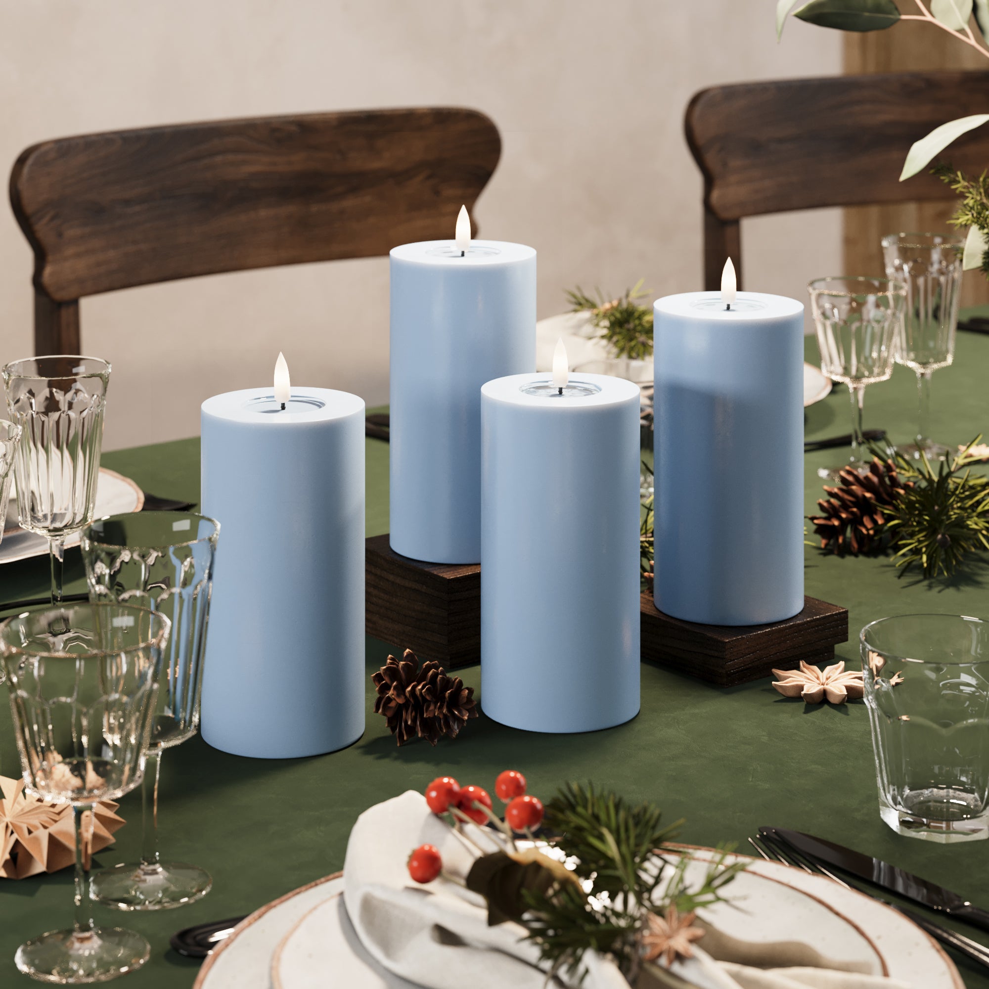 LED Stompkaarsen Ø 7,5 x 15 cm Ijsblauw - 4 pc's