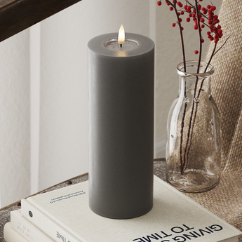 Ten elegancki LED Zablokować światło Szary Oferuje rzeczywisty efekt „prawdziwego płomienia”, który jest równie realistyczny jak prawdziwa świeca. O wysokości 20 cm i średnicy 7,5 cm LED Blokowanie świec starannie wykonanych z świec i żywicy, wyposażone w realistyczny płomień 3D i unikalną powłokę żywicy u góry. Ta szczególna kombinacja nie tylko tworzy autentyczne uczucie, ale także nadaje charakterystyczny „mokry wygląd”, który doskonale naśladuje stopione świece.