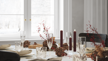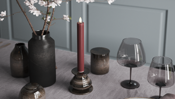 Vela fina ficam evidentes na mesa de jantar em castiçais finos, onde conferem um visual leve e elegante - tanto para o uso diário quanto na arrumação para convidados.