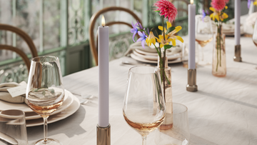 Vela fina funciona particularmente bem em prateleiras simples na mesa de jantar ou aparador quando se deseja um visual clássico e calmo.