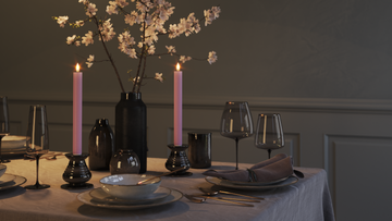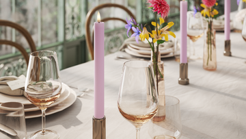Vela fina funciona particularmente bem em prateleiras simples na mesa de jantar ou aparador quando se deseja um visual clássico e calmo.